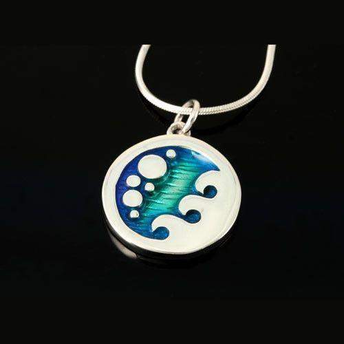 A gorgeous pendant from the Shetland jewellery Seascape range hand crafted from sterling silver and enamel, comes on an 18 inch silver snake chain.