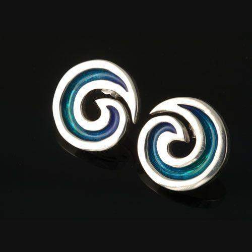 These Silver and Enamel Wave Earrings from Shetland Jewellery showcase exquisite craftsmanship with their elegant spiral design, meticulously hand forged from high-quality sterling silver. Available in both hook and stud fittings, they offer versatile wear to suit your style and comfort preferences. The vibrant enamel finish adds a splash of color that catches the eye and enhances the unique wave motif, making these earrings a striking accessory for any occasion. Embrace a blend of traditional artistry and contemporary flair with earrings that are as durable as they are beautiful, perfect for elevating your everyday look or special events.