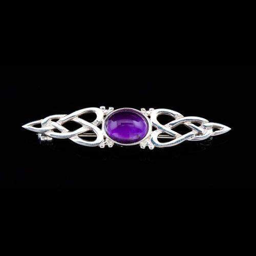 This exquisite Celtic brooch combines timeless tradition and elegant craftsmanship, meticulously handmade by skilled artisans in Shetland. Available in sterling silver or 9-carat yellow gold, it features intricate silverwork that beautifully frames a stunning oval amethyst stone. The rich purple amethyst adds a touch of royal sophistication, making this brooch a perfect statement piece for any occasion. Its quality materials ensure durability and lasting shine, while the distinctive Celtic design celebrates heritage and artistry. Whether worn for special events or as a daily accent, this brooch offers a unique blend of beauty and meaningful style.