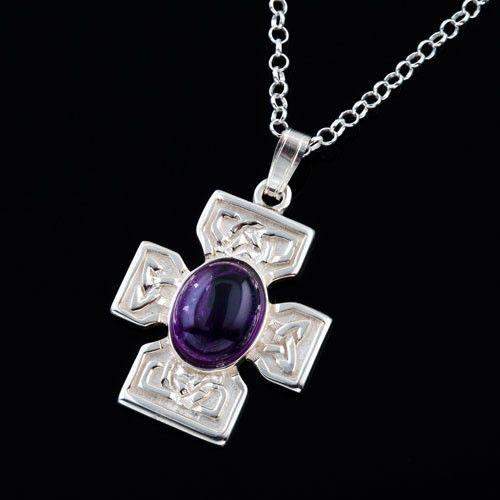 This exquisite sterling silver Celtic cross features a stunning cabochon amethyst stone set at its center, perfectly highlighting the intricate silverwork handcrafted by Shetland Jewellery artisans. Available in both silver and gold finishes, this piece combines timeless Celtic symbolism with the calming beauty of amethyst, known for promoting peace and clarity. Its detailed craftsmanship and vibrant gemstone make it a meaningful accessory or thoughtful gift, offering a unique blend of heritage and elegance that stands out in any collection.