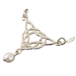This exquisite Celtic pearl necklace showcases the refined craftsmanship of Shetland jewellery artisans. Meticulously crafted from highly polished sterling silver or luxurious gold, the piece features intricate knotwork inspired by ancient Celtic traditions. A lustrous freshwater pearl suspended at the centre adds timeless elegance and a touch of natural beauty. The combination of expertly executed metalwork and the organic warmth of the pearl creates a sophisticated accessory suitable for both everyday wear and special occasions. Each necklace reflects the dedication to quality and attention to detail that defines authentic Shetland jewellery design, making it a meaningful addition to any collection.