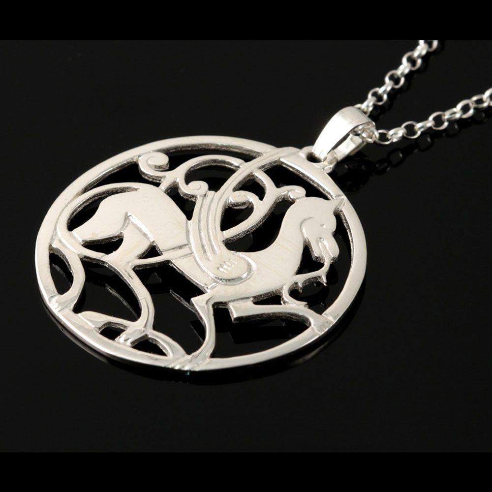 This pendant draws inspiration from a rare Viking-era bronze ornament discovered in Quendale, Shetland, capturing the unique form of the tribal beast depicted. Faithfully crafted in either highly polished sterling silver or 9ct yellow gold, it reflects exceptional workmanship that highlights the intricate detailing derived from ancient designs. Wearing this piece not only connects you to a significant archaeological find but also brings a distinctive historical and cultural story to your collection. Its elegant finish ensures the pendant stands out as both a wearable artifact and a refined statement of craftsmanship.