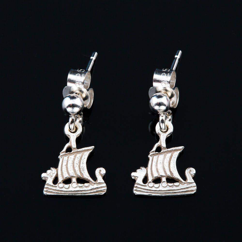 Silver Or Gold Viking Long Ship Drop Earrings - E66D- Shetland