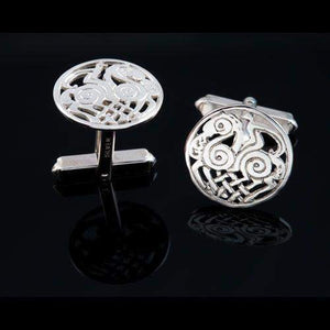 Discover a truly distinctive accessory with these Silver Sleipnir Cufflinks, expertly crafted from sterling silver by Shetland Jewellery. Each cufflink features Odin, the chief of the Norse gods, astride his legendary eight-legged horse, Sleipnir, symbolizing strength and wisdom. Perfect for those who appreciate mythology and craftsmanship, these cufflinks add a powerful statement to any formal outfit. Their intricate design and high-quality silver ensure lasting elegance, making them an exceptional gift for enthusiasts of Norse heritage or anyone looking to elevate their style with a meaningful touch.