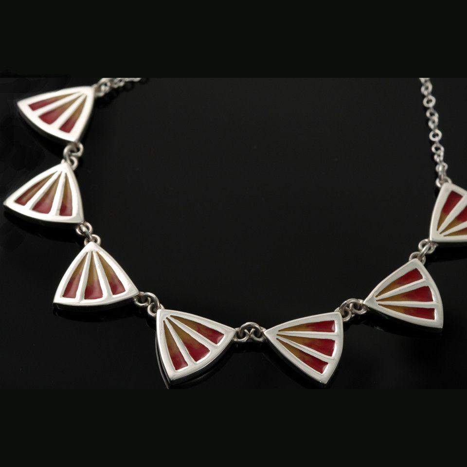 This beautiful necklace is made by Shetland jewellery using highly polished sterling silver and enamel. The necklace has three different colours, the colours are shown on a different necklace but are the colours the piece would have. The celtic fire collection is based around the four elements and comes from the celtic culture.