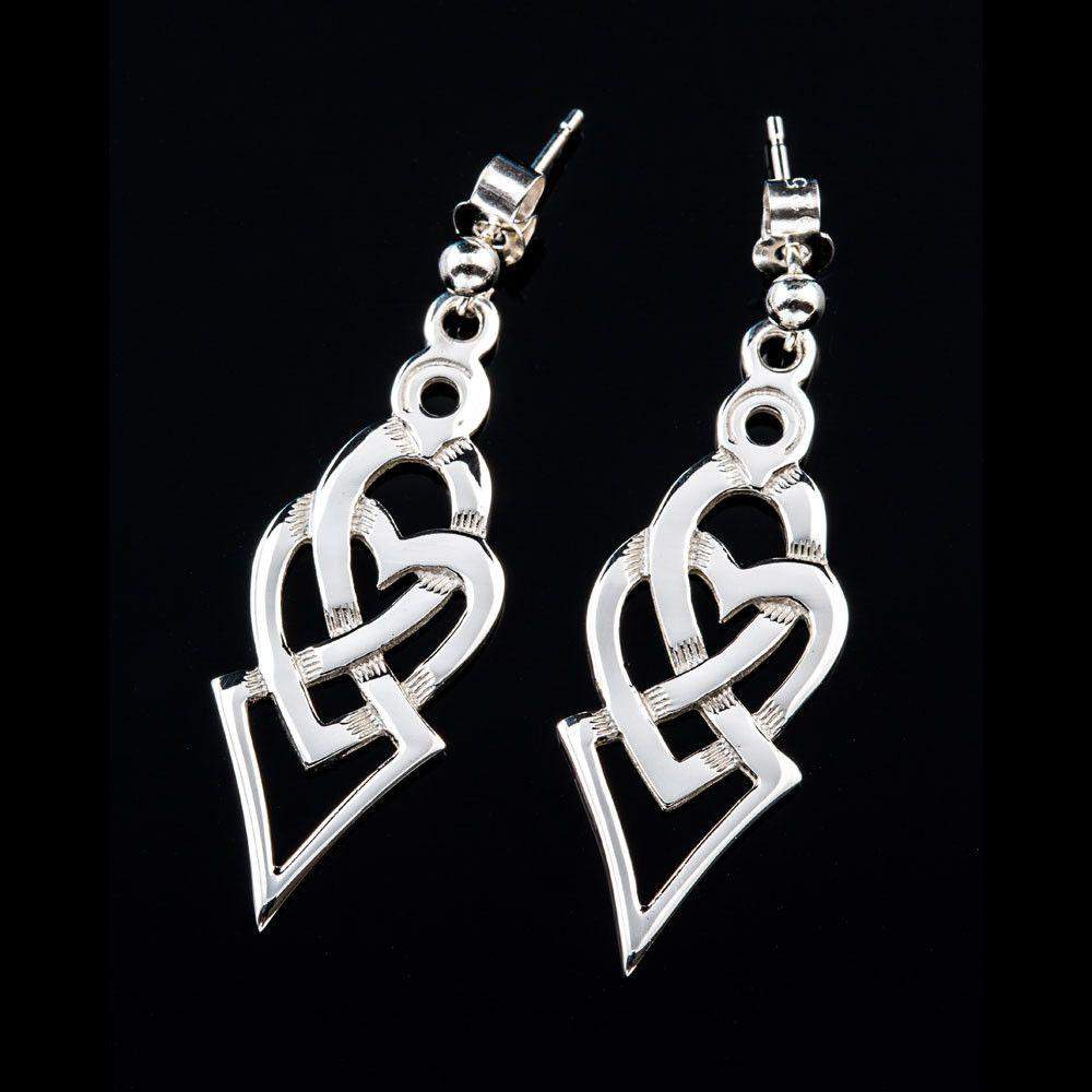 Silver Or Gold Celtic Heart Drop Earrings - E720- Shetland