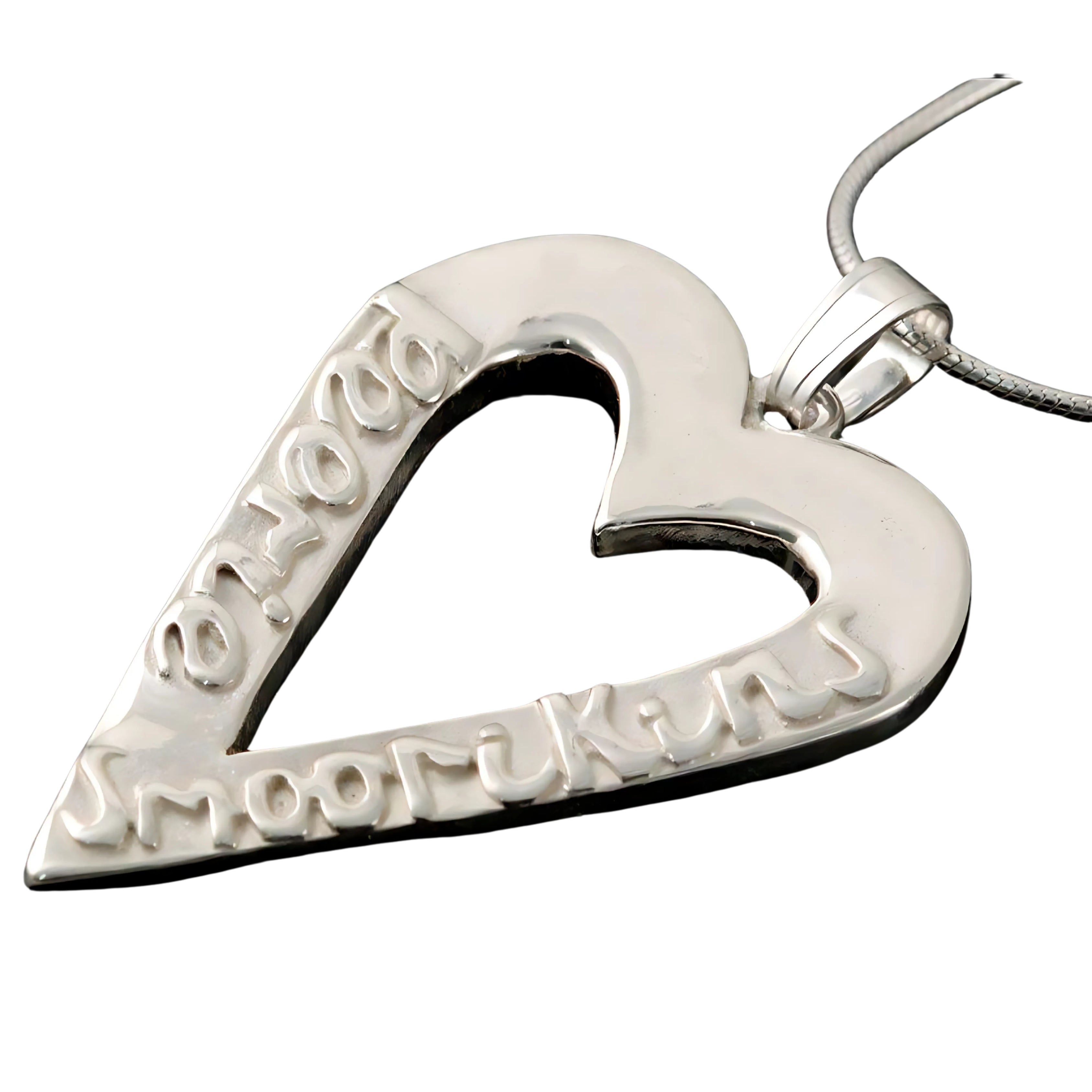 Crafted by expert Shetland artisans, this Silver Peerie Smoorikins Heart Pendant uniquely combines polished and textured sterling silver to highlight the intricate design and inscription. The word "Peerie Smoorikins," written in Shetland dialect, translates to "little kisses," infusing the piece with a tender, romantic charm. The careful interplay of finishes accentuates the text, creating both visual depth and tactile interest. This pendant not only celebrates Shetland’s rich cultural heritage but also serves as a meaningful token of affection, perfect for someone who appreciates craftsmanship and understated elegance.