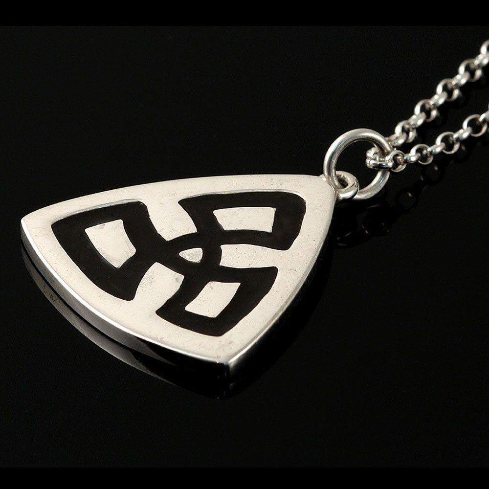 Crafted by skilled Shetland artisans, this Sterling Silver Triquetra Triangle Pendant showcases the timeless trinity knot design, revered for its symbolism of earth, air, and water—the fundamental elements sustaining life. Meticulously fashioned from highly polished sterling silver, the pendant’s smooth surface catches light to emphasize its elegant contours. Enhanced with carefully applied cold enamel, the detailing adds depth and subtle color contrast, enriching the pendant's intricate pattern. This piece not only reflects expert craftsmanship but also carries profound cultural significance, making it an ideal accessory for those who appreciate refined symbolism fused with quality artistry.