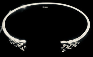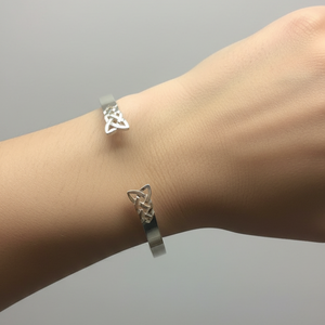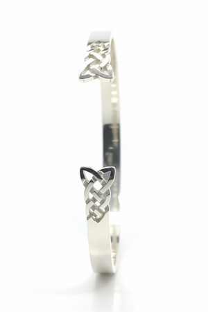 This striking silver Celtic torque bangle showcases an intricate penannular knotwork design that captures the essence of ancient Celtic artistry. Each piece is meticulously handcrafted in Glasgow by the skilled artisans at Mithril Jewellery, drawing inspiration from authentic Pictish and European heritage. The timeless knotwork symbolizes eternity and the continuous journey of life, making it far more than just jewellery—it's a wearable connection to centuries of tradition. The substantial design commands attention on the wrist, offering a bold statement that works beautifully with both contemporary and classic styles. Whether you're drawn to Celtic heritage, appreciate exceptional craftsmanship, or seek a piece with genuine cultural significance, this torque delivers on all fronts. Custom sizing is available to ensure a perfect fit tailored to you, making it an ideal choice for a deeply personal gift or a treasured addition to your own collection. Invest in a piece that honours ancient artistry while celebrating your individual style.