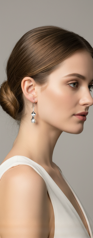 Exquisite designer drop earrings crafted in sterling silver set with a peacock coloured pearl.