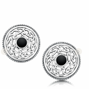 These striking, sterling silver drop earrings have an appealing and elaborate Celtic knot pattern, with an oxidised silver background to create an interesting contrast.
