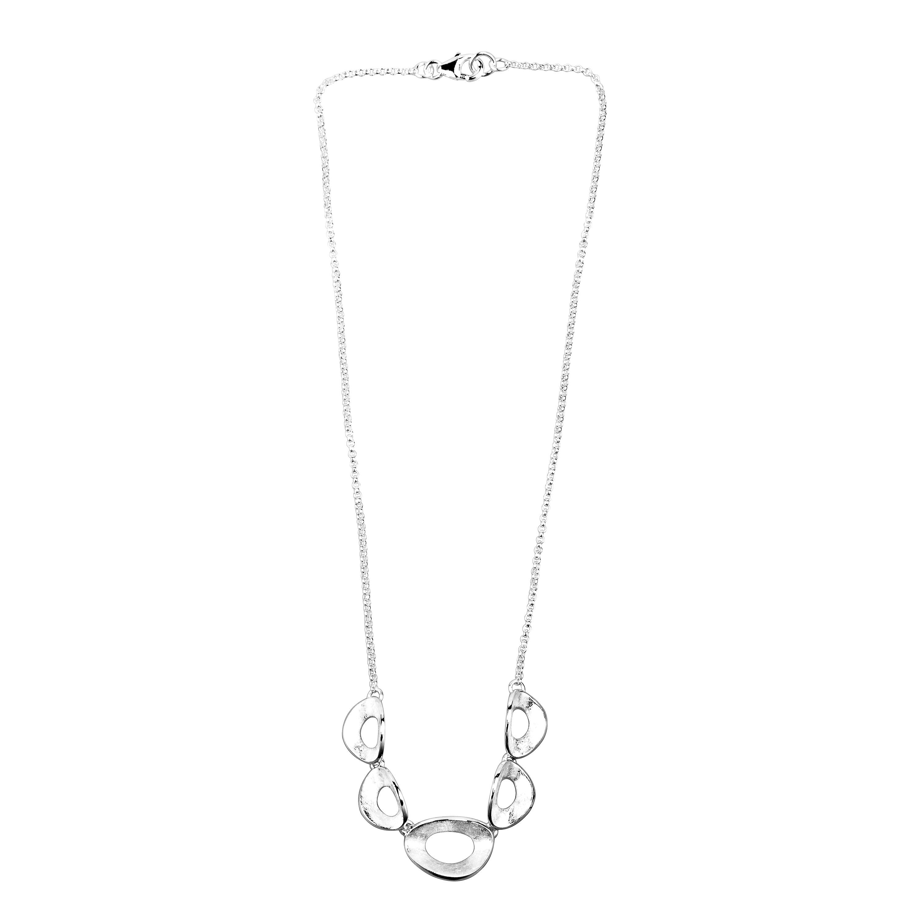 This pretty necklace has textured little squished circles. A lovely every day necklace in silver.