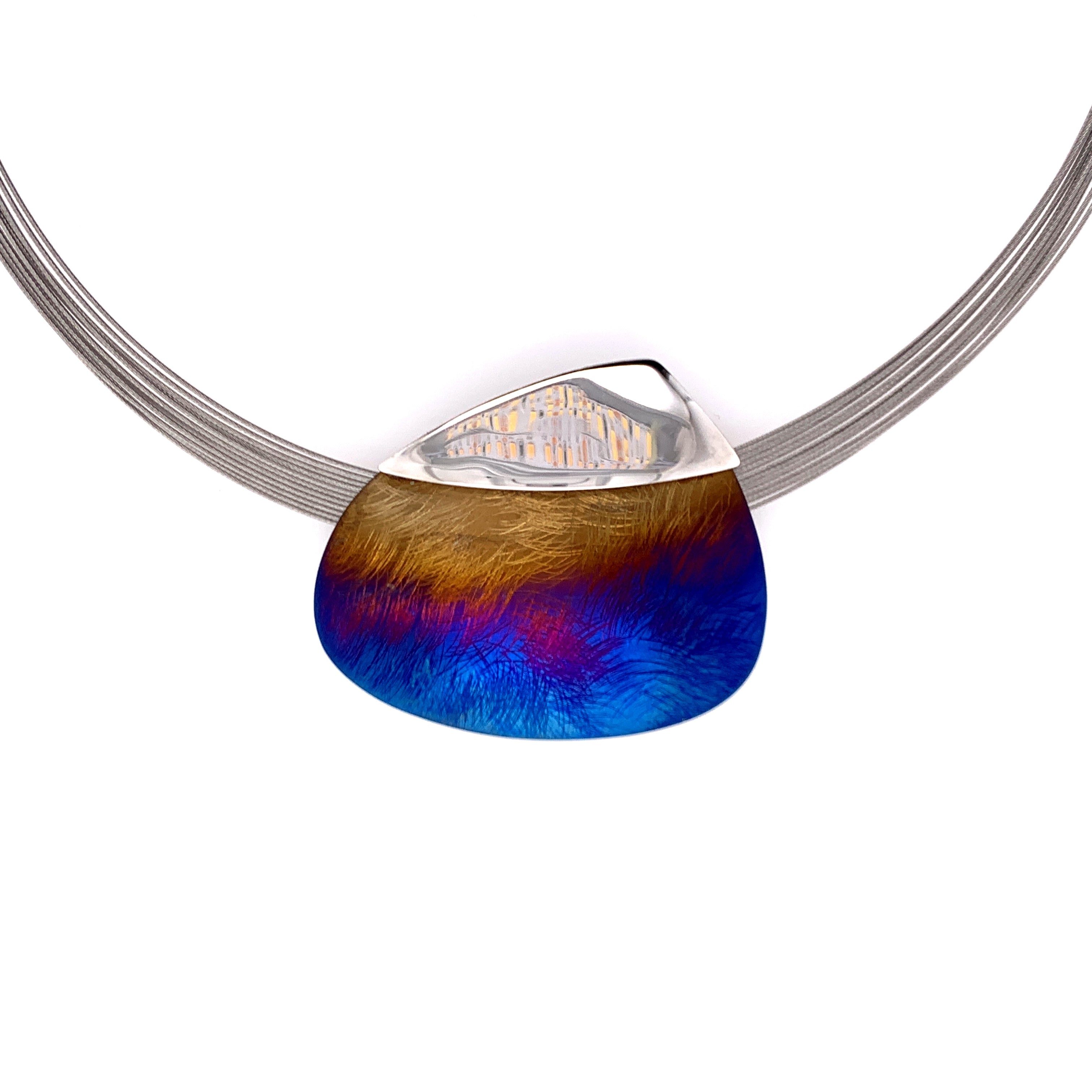 Gorgeous pendant with fabulous colours shot through the titanium. Crafted with elegance and style in mind, this butterfly necklace showcases the stunning beauty of titanium. With its vibrant colors and luxurious shine, it's a must-have accessory for any fashion-forward woman.